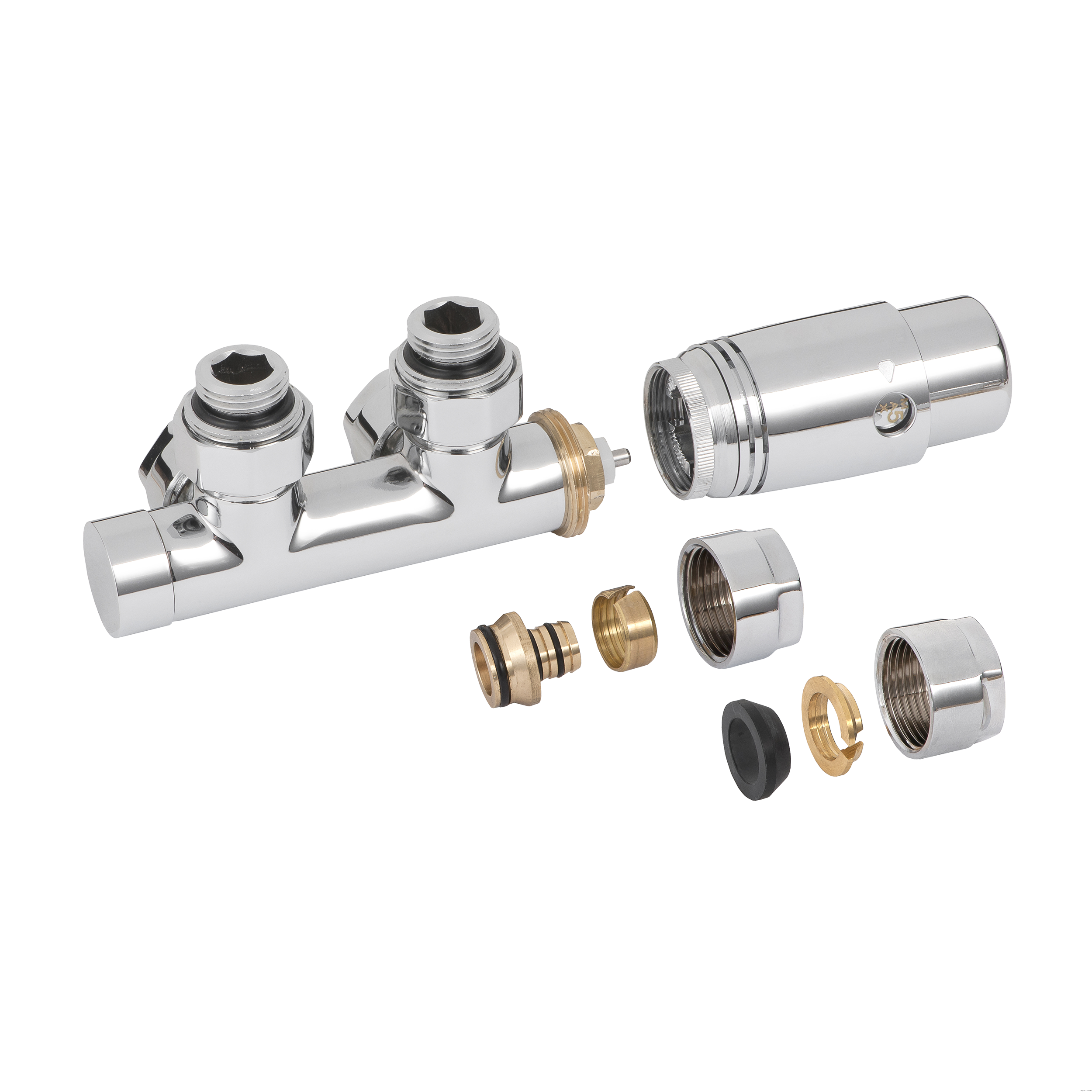 Służy do przełożenia zaworu grzejnikowego typu DUOPLEX z prawej na lewą należy użyć kluczy nasadowych: - dla zaworu zasilającego rozmiar klucza 19 - dla zaworu powrotnego rozmiar klucza 17. Dostępny w trzech kolorach: białym (RAL 9016), grafitowym i chromie.