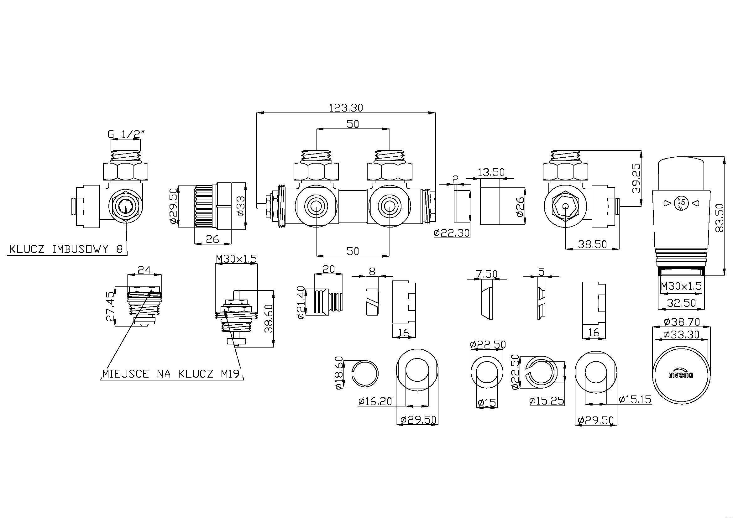Producent InvenaZestaw do dolnego podłączenia typu Duoplex nietermostatyczny Biały Prov CZ-96-B15 producent Invena