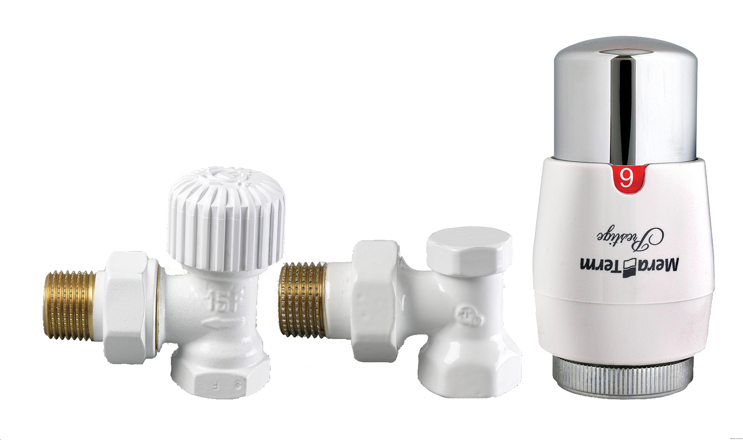 Zestaw instalacyjny Elegant wersja kątowa lub prosta. Zawór termostatyczny kątowy lub prosty, zawór odcinający kątowy lub prosty, głowica termostatyczna Prestige.